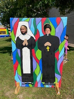 Franciscan Sisters of Christian Charity received a personal invitation from Pastor Father Jim Lucas to come to St John the Baptist, Howard, Wisconsin, for a recent BlessFest parish picnic.  Sister Sue Ann Hall, Sister Concepcion Medina and Sister Julie Ann Sheahan not only had a reserved area in the prayer tent, but were welcomed to distribute parish generated vocation prayer cards near the children’s prize tent with members of the Parish Vocation Committee. In both locations we were aware of how the spirit of the parish patron was alive among the people. A highway of welcome was ours! There was an eagerness of spirit to be a forerunner for Christ in others’ lives.