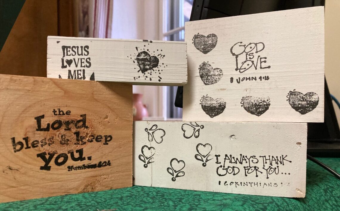 Franciscan Sisters of Christian Charity Sister Julie Ann Sheahan, Sister Leonette Kochan and Sister Jacqueline Spaniola were among the vendors both days. This year Sister Elaine’s Dad, Ken Turba, cut wood blocks of various sizes that the Sisters either kept in their natural wood or spray painted white and stamped with motivational quotes. All were encouraged to recreate the craft item and give away as a gift. Rebuild My Church.